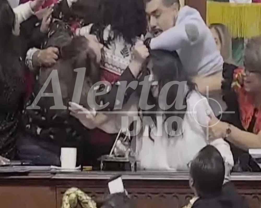 Esto provocó un enfrentamiento a golpes y jalones de cabello entre diputadas que subieron al estrado para enfrentarse y demostrar su inconformidad.