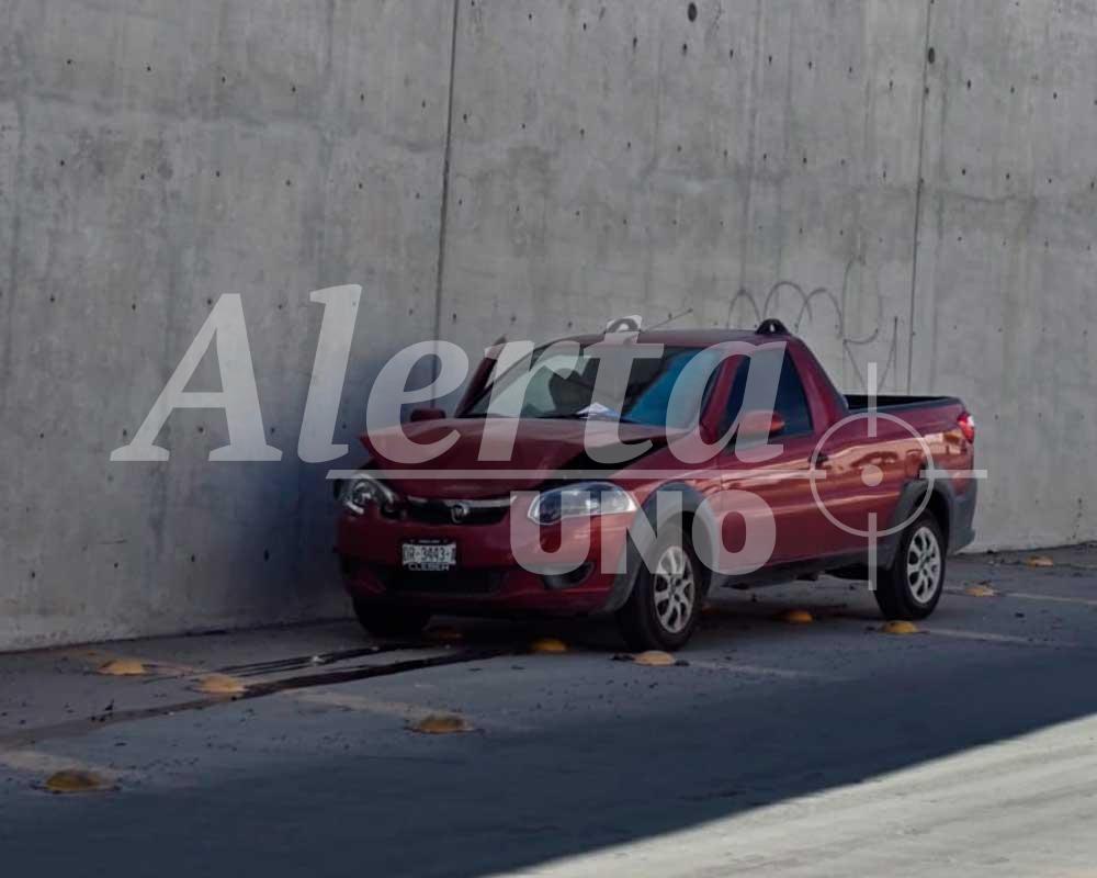 En el sitio permaneció una camioneta Dodge guinda tipo pick-up con el frente dañado y derrame de fluidos a causa, aparentemente, de un desperfecto en el radiador.