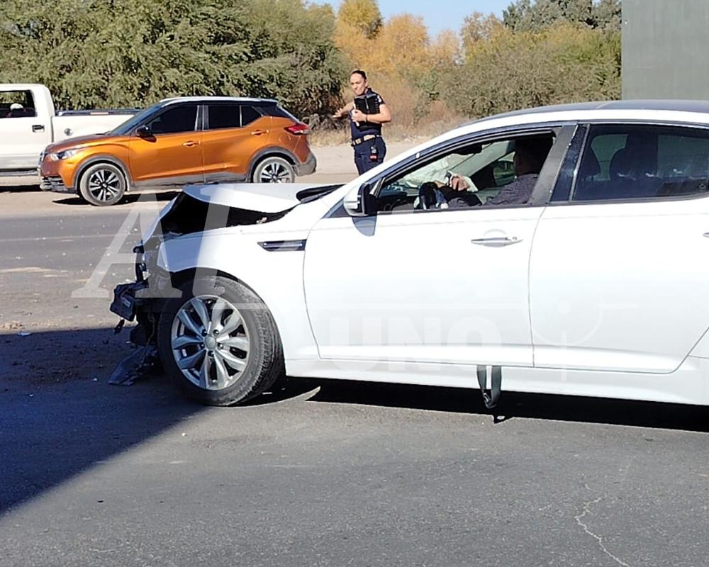 Este domingo por la tarde se registró un choque entre dos vehículos en la prolongación de la avenida Fernando Baeza con Paseo de las Cumbres, a la entrada del fraccionamiento Cumbres del Deporte.
