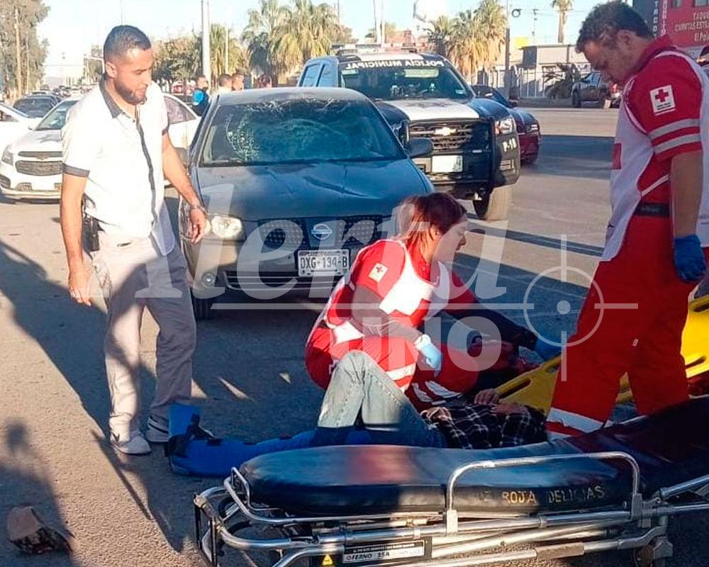 Delicias, Chihuahua.– Un ciclista sufrió lesiones de consideración luego de ser impactado por un automóvil la tarde de este día en el cruce de la avenida Fernando Baeza con la avenida Sexta, en el sector sur de la ciudad.