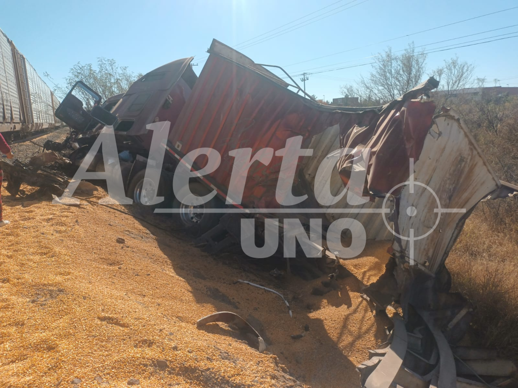 Un tráiler fue impactado por el ferrocarril la mañana de este lunes en un cruce ubicado en la colonia Industrial Sur, provocando cuantiosos daños materiales y la movilización de diversas corporaciones de emergencia.