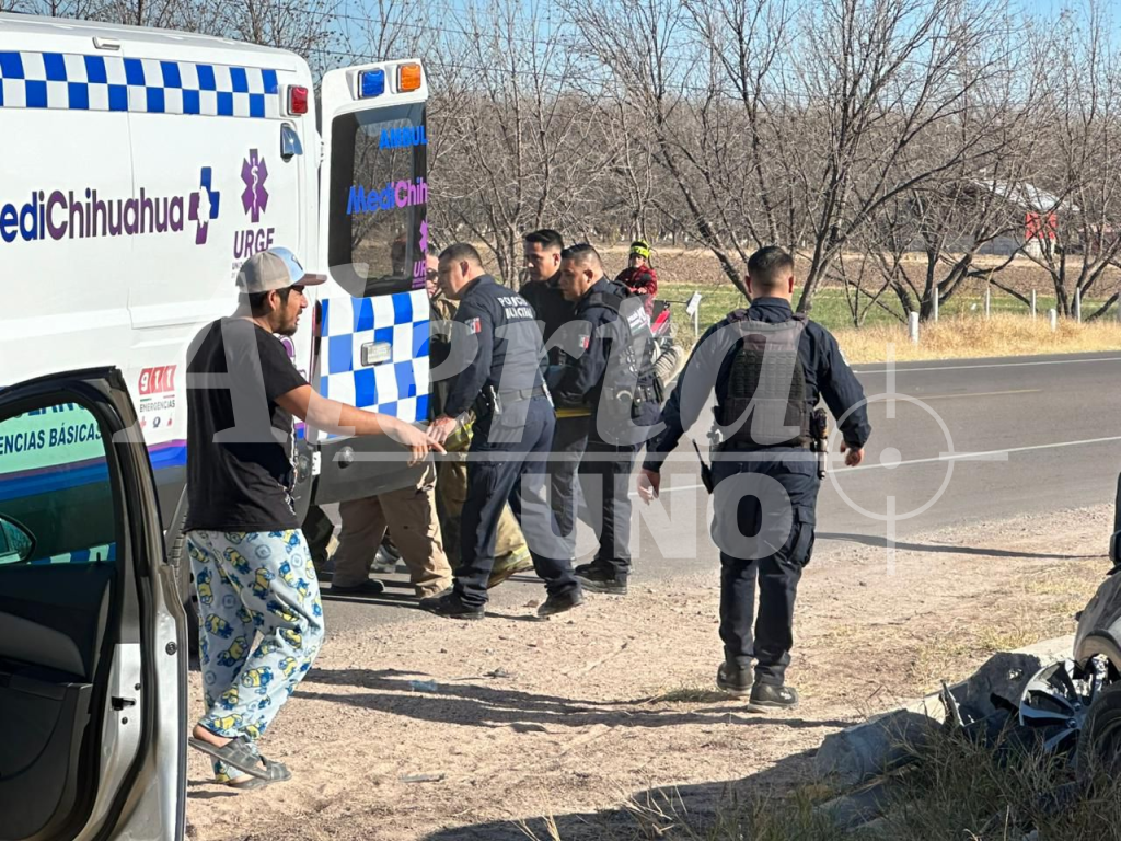 Los lesionados, un par de adultos de entre 55 y 60 años, viajaban en un Nissan Sentra negro con placas de Texas, dirigiéndose de oeste a este hacia su negocio de chicharrones. El conductor perdió el control del vehículo tras experimentar un malestar, lo que llevó a que se saliera de la carretera y chocara contra una pila de postes de repuesto de la Comisión Federal de Electricidad (CFE).