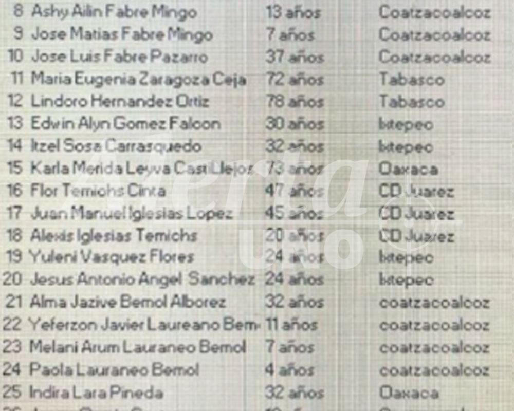 De acuerdo con la lista de pacientes en el hospital de Matías Romero, los juarenses heridos tienen 20, 45 y 47 años, y se encuentran recibiendo atención médica especializada tras el accidente que involucró dos locomotoras y cuatro vagones.