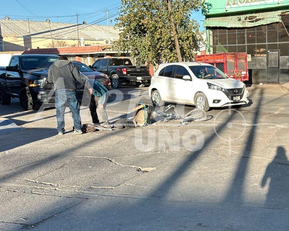En el percance se vieron involucrados una bicicleta de color azul, conducida por un adulto mayor y con afectaciones en la llanta delantera, así como una motocicleta Italika FT 180 en tonos negro y azul, manejada por un joven dedicado al reparto.