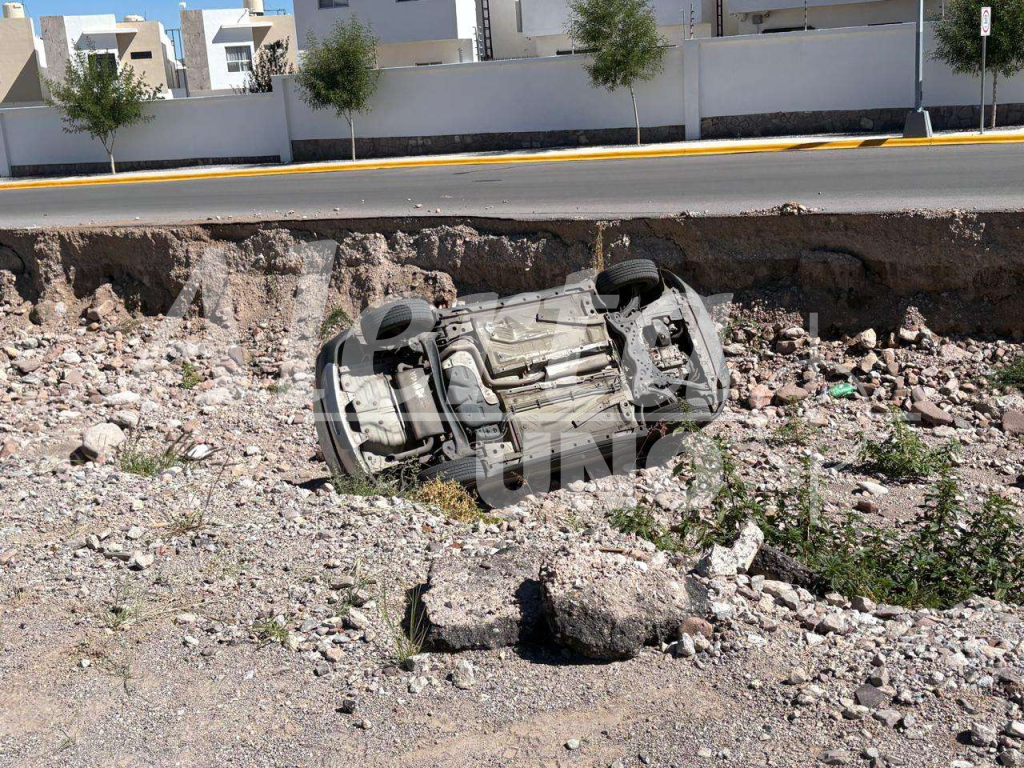 El percance se registró en el cruce de la avenida Prolongación Desarrollo y la calle Molino Novo, cuando una mujer que manejaba una Chevrolet Tracker, de modelo reciente, no logró controlar la unidad, provocando que saliera del camino y terminara volcada.