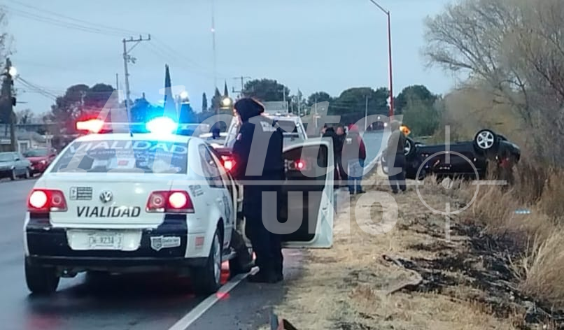 La mañana de este lunes se registró un accidente vial tipo choque-volcadura frente al Centro de Convenciones, en el municipio de Rosales, en el que se vio involucrado un agente de la Policía Municipal, quien se dirigía a iniciar su turno.