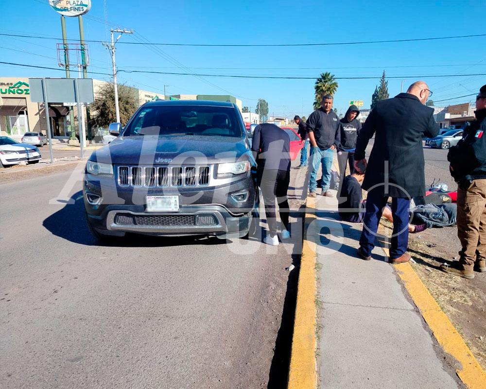 El incidente se registró al llegar al cruce con la avenida Sexta Oriente, cuando una camioneta Jeep de color gris intentó incorporarse a la Calzada del Charro desde la Sexta Oriente, a la altura del fraccionamiento Quintas Mariana. Durante la maniobra, el conductor invadió el carril por el que transitaba la motocicleta, provocando el impacto en la parte trasera de la unidad ligera.