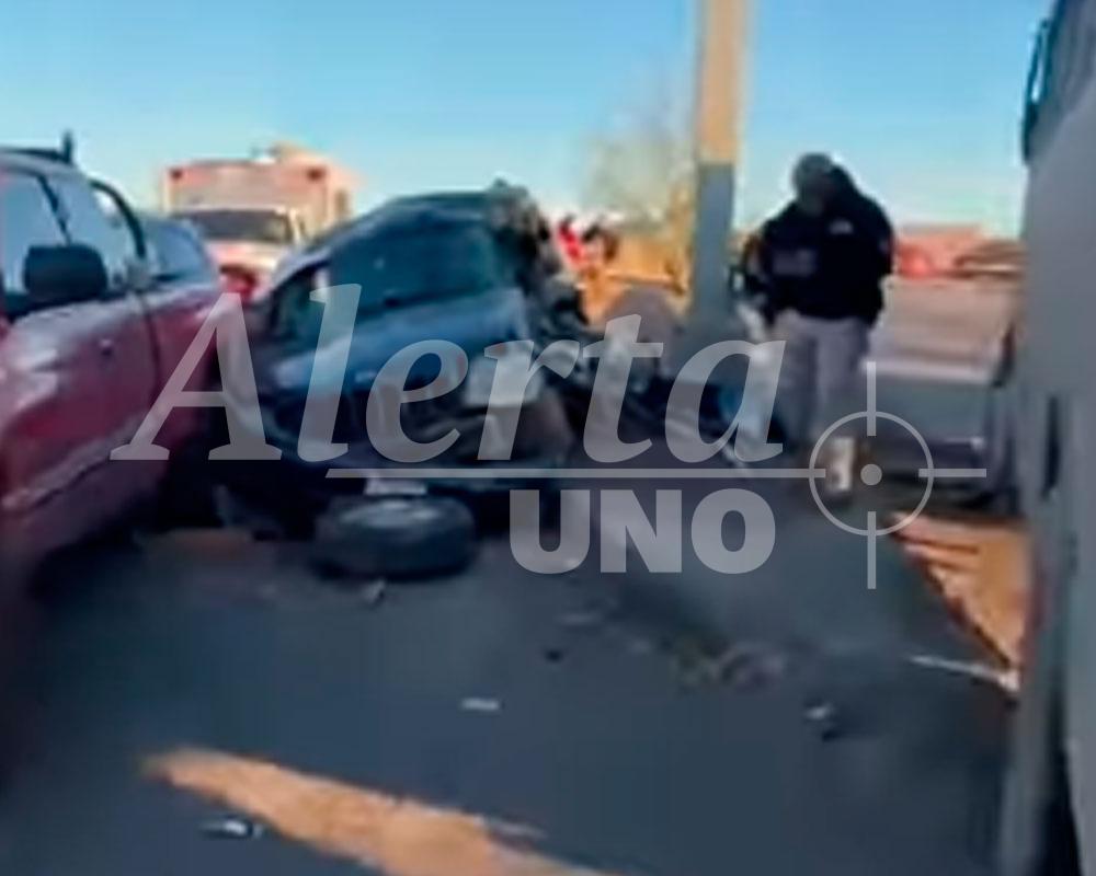 Chihuahua.- Un fuerte accidente entre un camión de transporte urbano y una camioneta tipo Cherokee dejó una persona fallecida y al menos 19 personas lesionadas en el cruce de las avenidas Fuentes Mares y R. Almada, al sur de la ciudad, lo que provocó una amplia movilización de cuerpos de emergencia.