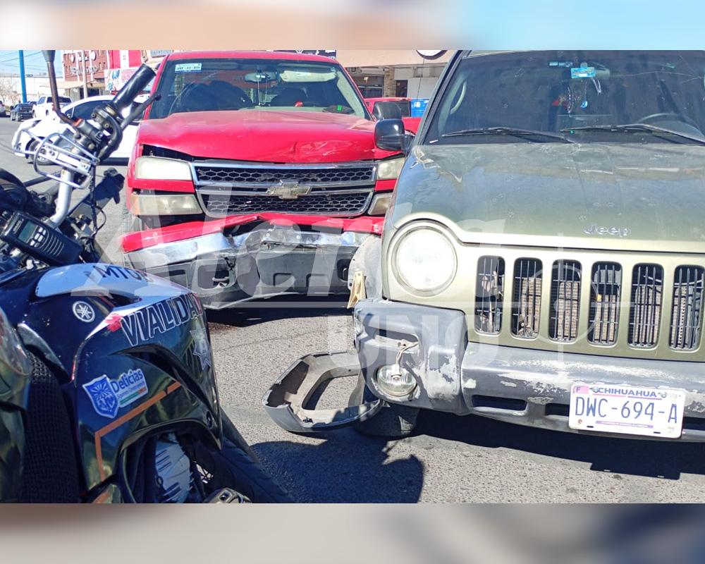 Un fuerte choque entre dos vehículos sorprendió la tarde del sábado a quienes transitaban por el corazón de la zona centro de Delicias, generando alarma en la intersección de la calle 3ª y avenida Agricultura.