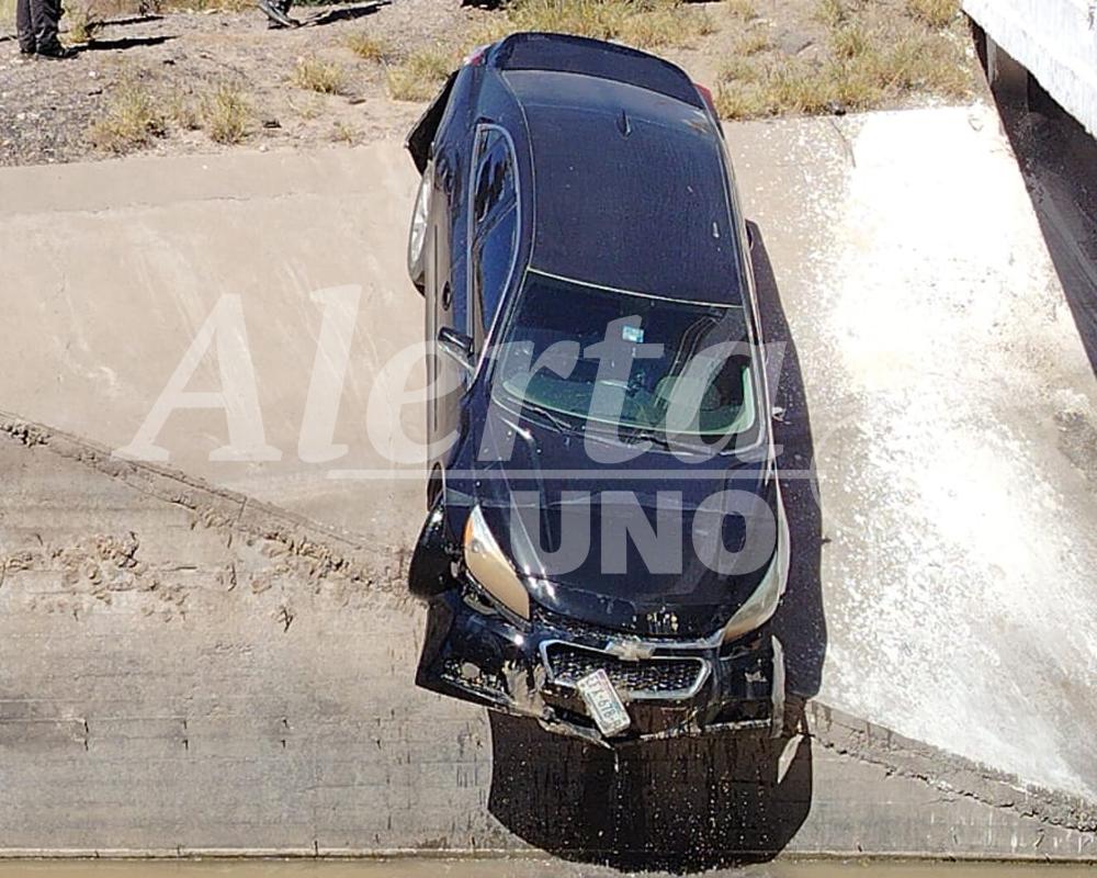 Durante la tarde de este domingo, un Chevrolet Malibú negro perdió el control mientras circulaba por la carretera federal 45, a la altura del puente Terrazas, y terminó cayendo al canal principal Conchos en el kilómetro 130, dejando el vehículo con daños considerables.