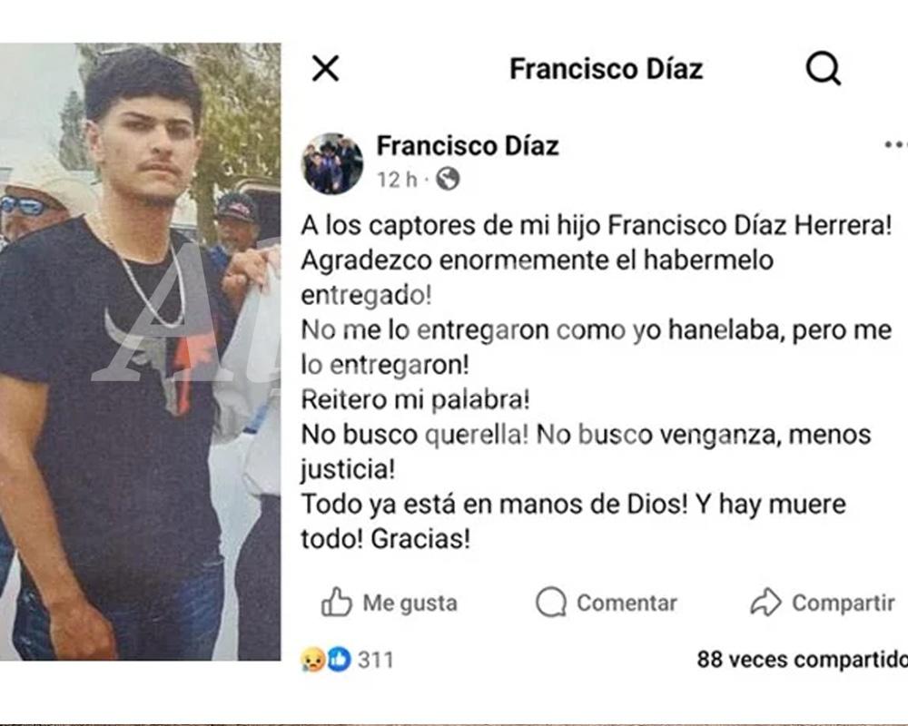 Con un mensaje que estremeció a miles, Francisco Díaz agradeció a quienes le entregaron a su hijo, aunque confesó que no era la forma en la que soñaba volver a verlo. Entre resignación y fe, aseguró que no busca venganza ni justicia, dejando todo en manos de Dios.