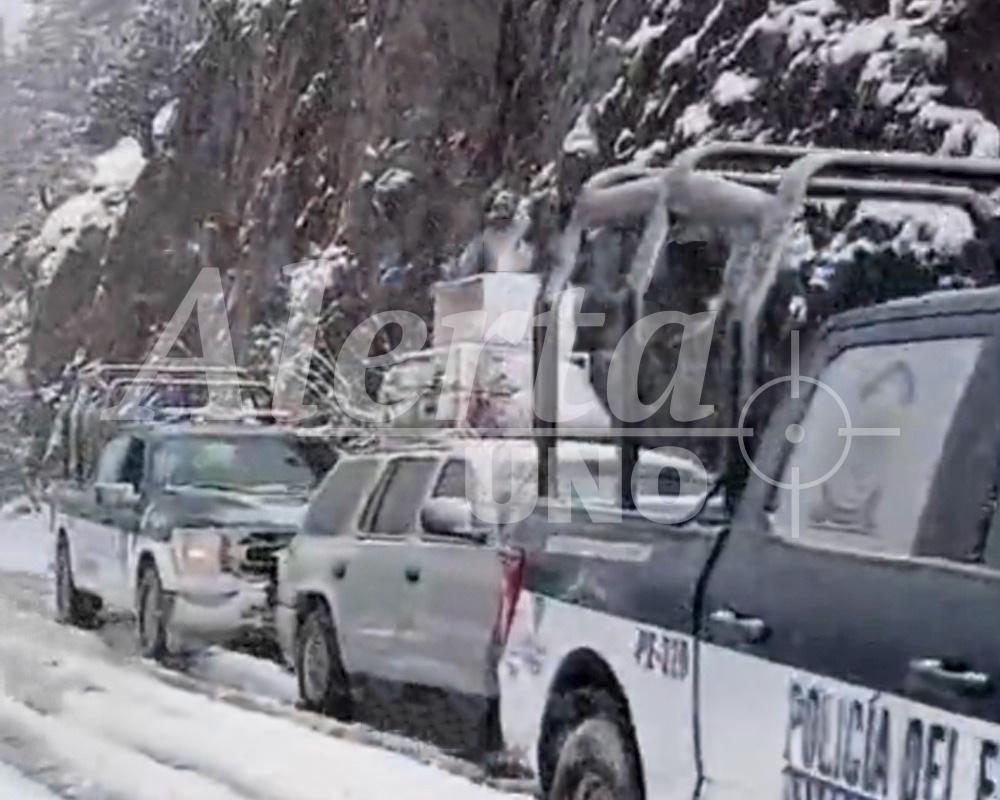 Una familia quedó atrapada en plena sierra cuando la nieve bloqueó su avance sobre la carretera de Parral a Guadalupe y Calvo. El vehículo quedó inmovilizado en un tramo peligroso, exponiendo a cuatro mujeres y dos menores a las bajas temperaturas.
