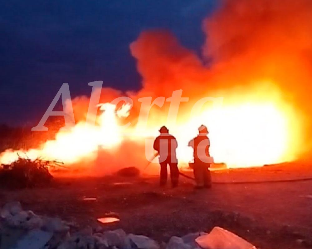 Debido a la magnitud del siniestro, elementos del Departamento de Bomberos acudieron al lugar a bordo de la máquina número 20, comenzando de inmediato las labores para controlar y extinguir las llamas. Los trabajos se enfocaron en dos zonas principales del predio, donde el fuego alcanzó mayor intensidad por la presencia de llantas.