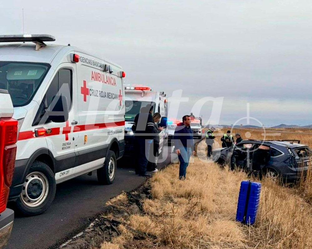 Chihuahua, Chih.– Un accidente vial se registró en el kilómetro 140 de la carretera con rumbo a Juárez, donde una camioneta Honda CR-V terminó volcada luego de que la conductora perdiera el control y se saliera de la cinta asfáltica.
