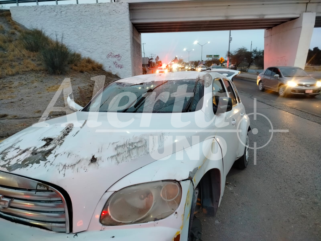 El accidente involucró a un Chevrolet blanco con placas DWK-794B del estado de Chihuahua. Según los reportes, el conductor perdió el control del volante, lo que provocó que el vehículo chocara contra el muro del puente y dañara parte de las estructuras laterales, para finalmente quedar volcado sobre su toldo. Afortunadamente, las personas que viajaban a bordo, en su mayoría mujeres, resultaron ilesas.