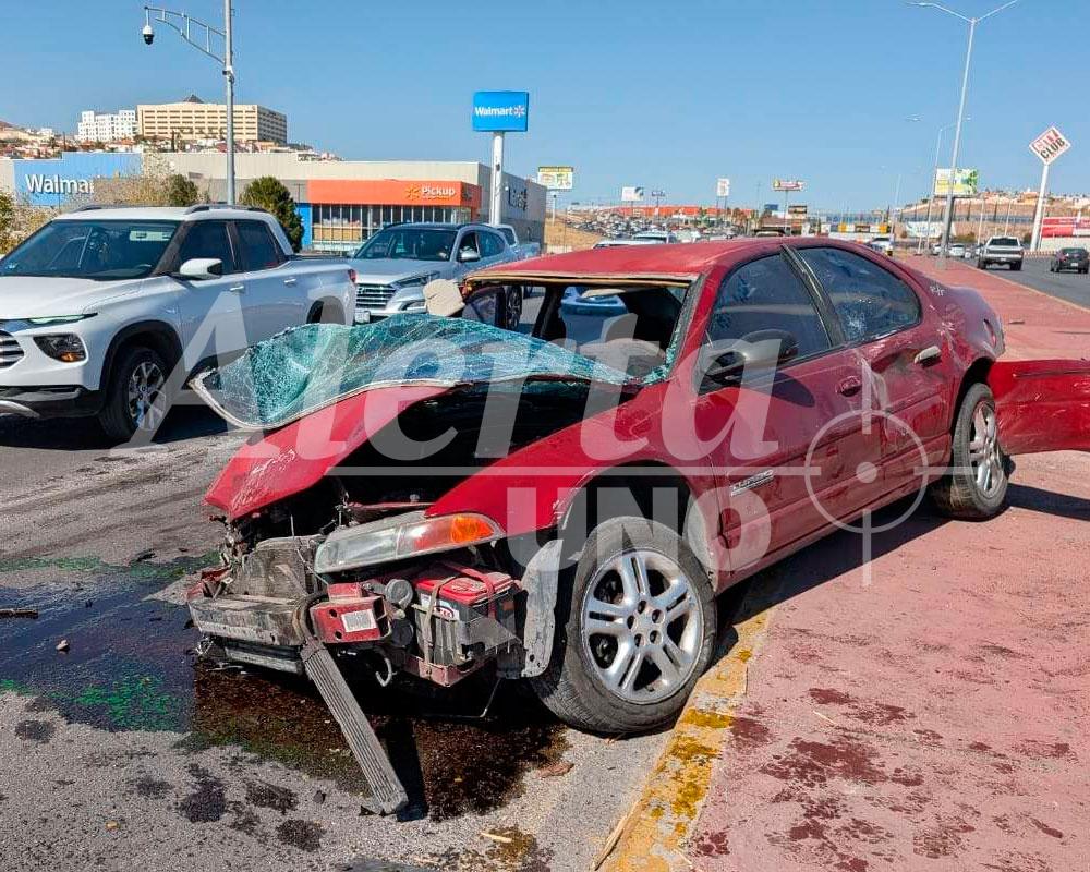Chihuahua.– Un accidente automovilístico registrado sobre el Periférico de la Juventud ocasionó un intenso tráfico, luego de que un vehículo Dodge Stratus de modelo antiguo, que circulaba de norte a sur, se viera involucrado en un percance presuntamente relacionado con el exceso de velocidad.
