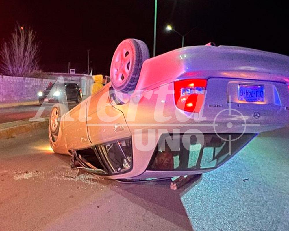 Camargo.– Durante la noche de este viernes se registró un accidente vial que terminó en volcadura, cuando un vehículo tipo Honda, color gris, con dos jóvenes a bordo, perdió el control.