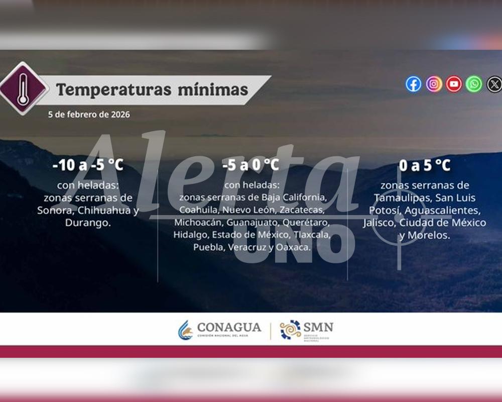 El frío volvió a imponerse en gran parte del país este 5 de febrero, con temperaturas que alcanzan hasta menos 10 grados en zonas serranas, de acuerdo con la alerta emitida por el Servicio Meteorológico Nacional. El amanecer gélido afecta principalmente a estados del norte y centro de México.
