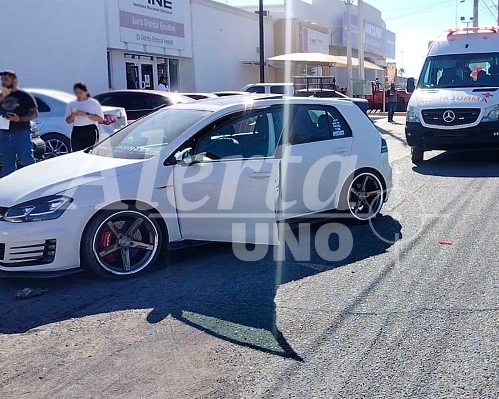 Delicias.- Un accidente vial se registró sobre la avenida Fernando Baeza, frente a las oficinas del Instituto Nacional Electoral, en el sector oriente de la ciudad. En el hecho participaron dos vehículos: un Toyota Yaris azul marino y un Volkswagen Golf blanco, los cuales chocaron cuando la conductora del Yaris intentó ingresar al estacionamiento del INE sin notar que por el otro carril circulaba el Golf, ocasionando así el impacto.