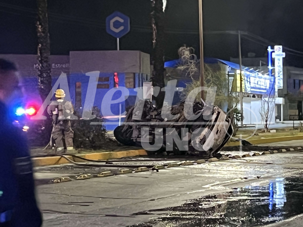 Según versiones preliminares, un Honda Accord color rojo colisionó violentamente contra una camioneta Dodge Durango, lo que provocó que ésta volcara y terminara envuelta en llamas.