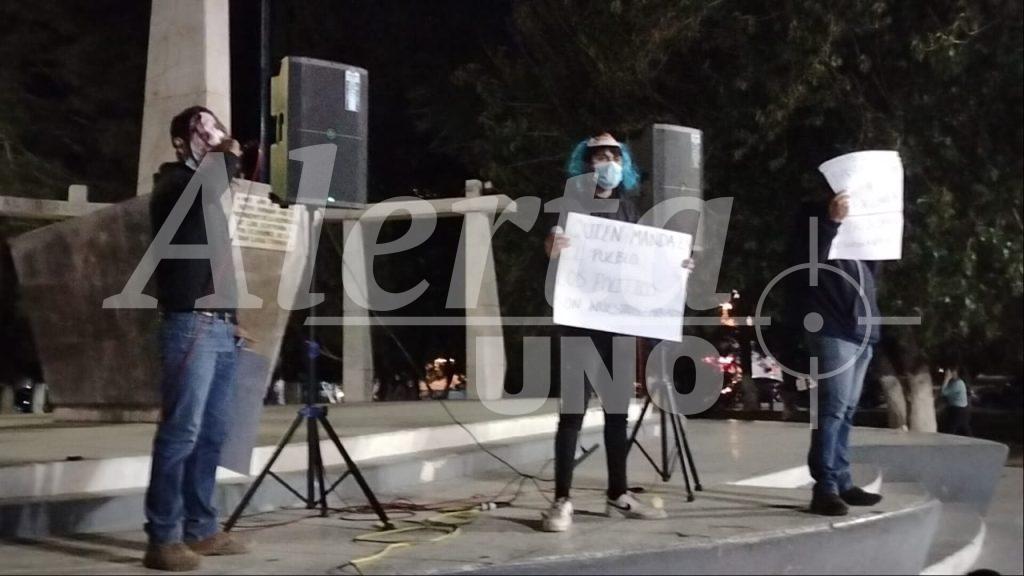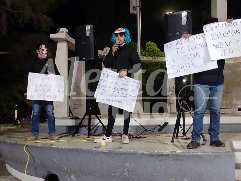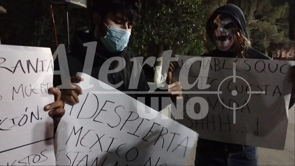 Tres jóvenes encapuchados realizaron una manifestación pacífica la tarde-noche de este lunes en la Plaza Benito Juárez de Delicias, portando pancartas con mensajes de protesta contra la violencia, la corrupción y el miedo que, aseguraron, se ha extendido en todo el país tras el asesinato del alcalde de Uruapan, Michoacán, Carlos Manzo Rodríguez.