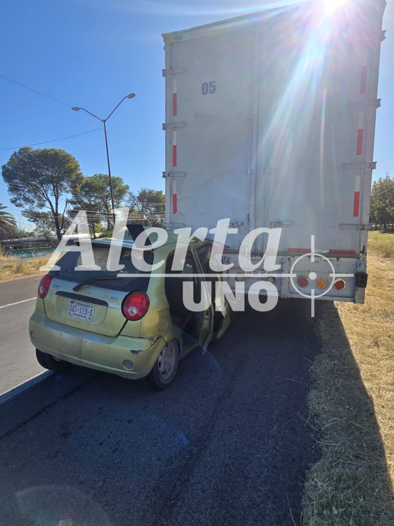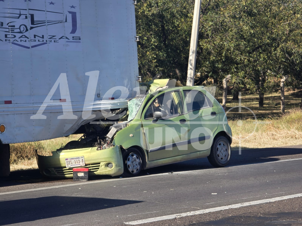 El percance ocurrió en el kilómetro 165+500, pasando las gasolineras en dirección norte a sur, cerca del seccional de Lázaro Cárdenas. De acuerdo con los primeros reportes, el conductor de un Matiz tipo G2, color verde, con placas DXS-113A, perdió el control del volante y se estrelló contra la parte trasera de un camión Dina modelo 1998, color blanco, con número económico 05.