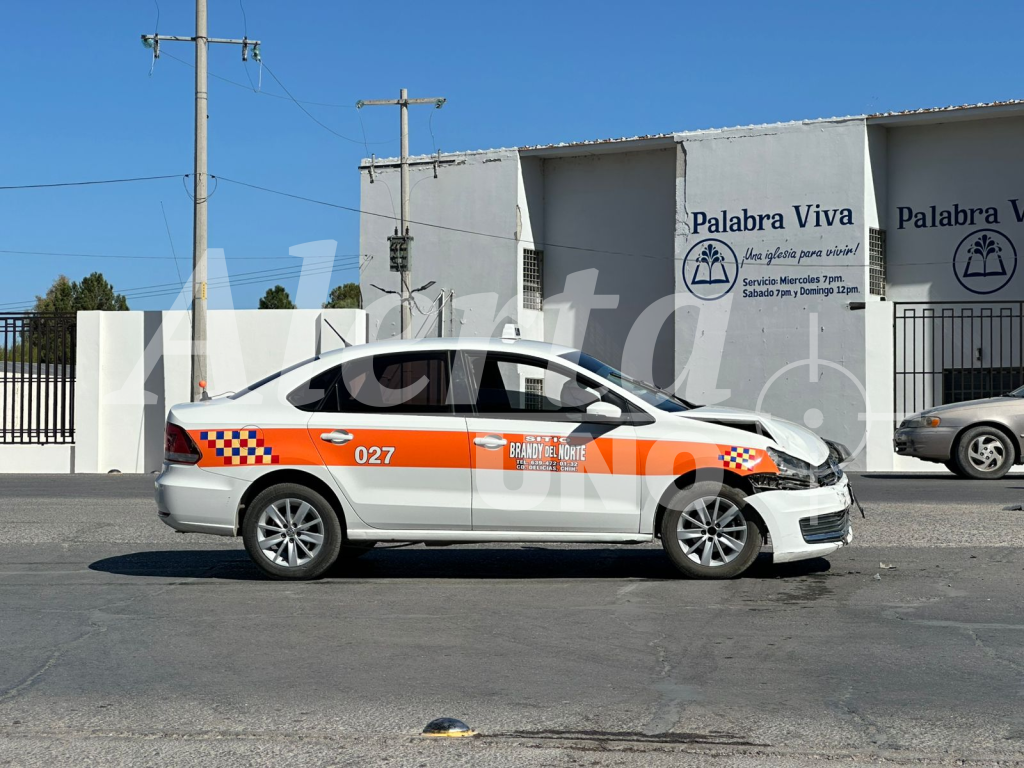 Un accidente vial registrado la tarde de este jueves en la vialidad que conecta el distribuidor Las Vírgenes con el puente de Soriana generó una intensa movilización de cuerpos de auxilio y tránsito. El hecho ocurrió a la altura del hotel American Inn, donde una camioneta Dodge roja y un taxi del sitio Brandy del Norte, número económico 027, chocaron en circunstancias aún no precisadas.