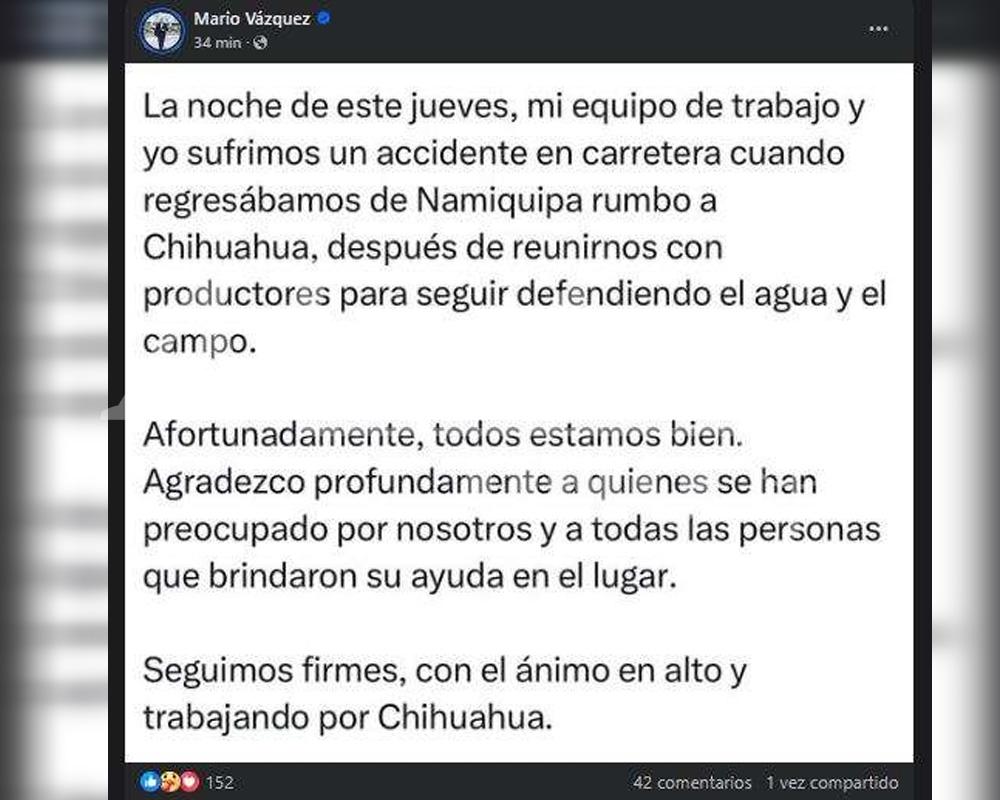 A pesar del aparatoso accidente, el senador Mario Vázquez y su equipo lograron salir ilesos. El chofer de la camioneta sufrió lesiones leves por los vidrios rotos, aunque testigos señalaron que el impacto pudo tener consecuencias mucho más graves. Las autoridades mantienen la investigación abierta para determinar responsabilidades.