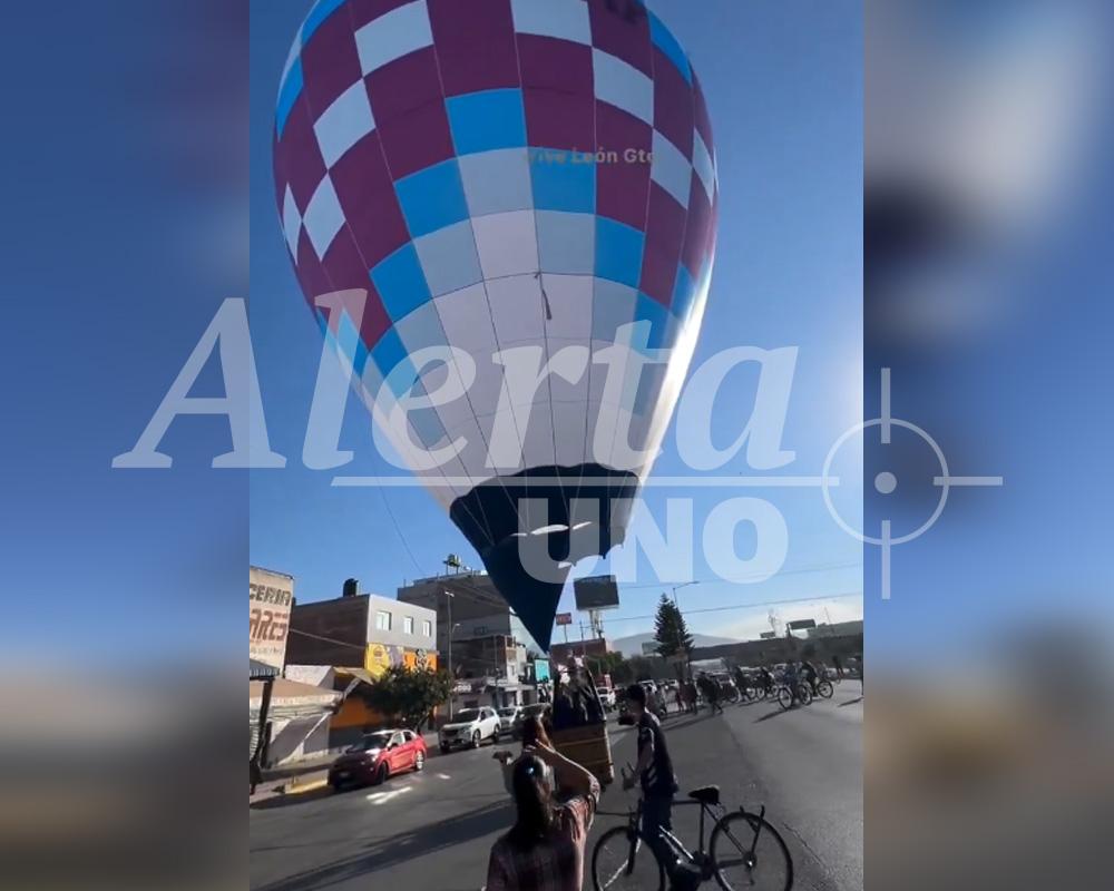 Momentos de tensión se vivieron en el Libramiento José María Morelos, en León, Guanajuato, cuando un globo aerostático perdió altura de manera inesperada y se vio obligado a aterrizar antes de tiempo, sorprendiendo a conductores y vecinos que presenciaron la escena. La aeronave descendió entre casas y vehículos, generando alarma ante el riesgo de un posible accidente mayor.