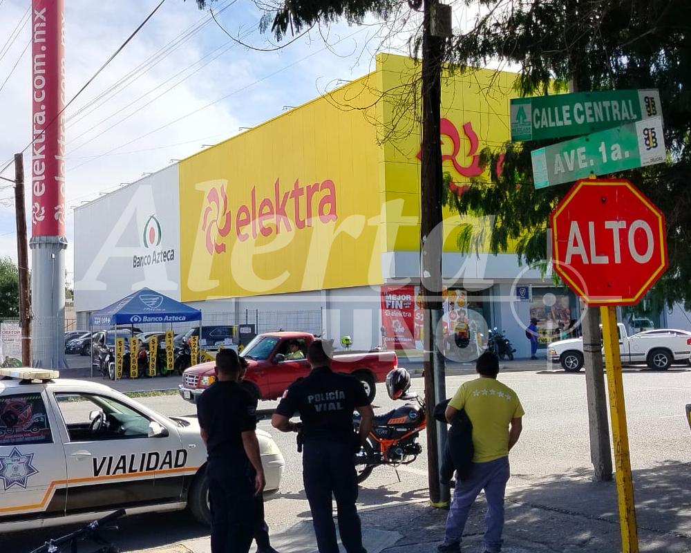 La tarde de este sábado se registró un accidente en el primer cuadro de la ciudad, en la intersección de la calle Central con la avenida Primera Norte, frente a la tienda Elektra. Un vehículo Kia azul tipo Río y una motocicleta Italika naranja con negro se vieron involucrados después de que el conductor del Kia no respetara la preferencia de paso.