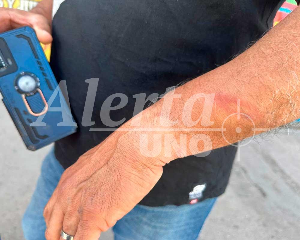 Durante su hora de comida, comentó lo sucedido con su esposo, quien decidió acudir al lugar para aclarar la situación. El hombre señaló que llegó alrededor de la 1:30 p.m. y se acercó solo para preguntar qué había pasado. Asegura que recibió nuevamente insultos y, sin saber que se trataba del esposo de la mujer que había estado involucrada en la mañana, el adulto mayor ingresó al local con un tubo y lo golpeó en el brazo, lo cual quedó documentado con la lesión visible.