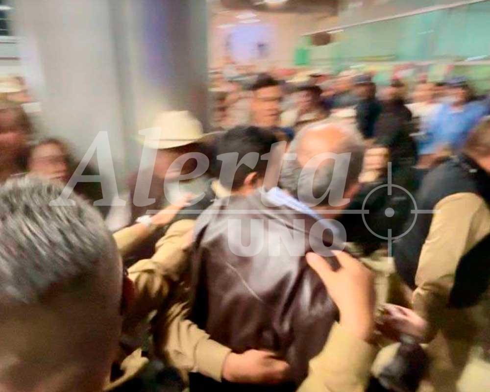 La situación se tensó cuando los asistentes le exigieron que se retirara, por lo que el personal de seguridad del Congreso del Estado tuvo que intervenir para evitar que el conflicto se tornara violento.