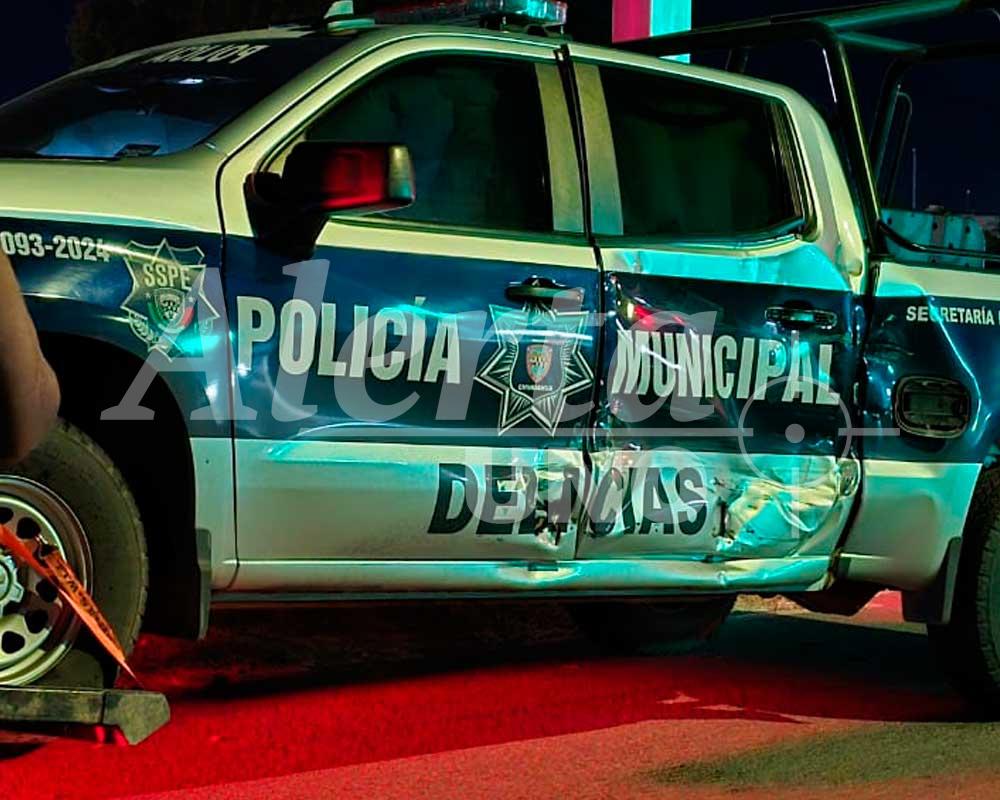 Delicias.- Una patrulla de la Policía Municipal resultó involucrada en un accidente la madrugada de este domingo, alrededor de la 1:30, en el cruce de la avenida Tecnológico y la calle Ferrocarril, en la zona norte de la ciudad.