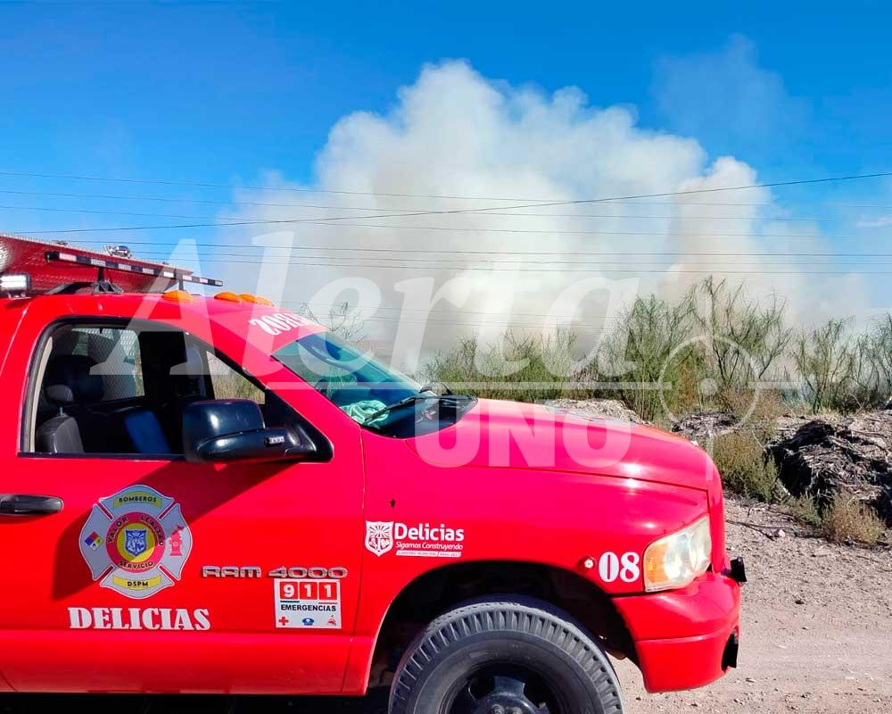 Delicias.- Un incendio en pasto seco detrás de la antigua maquiladora Wrangler movilizó este domingo a los cuerpos de bomberos y protección civil, generando una densa columna de humo que se pudo observar desde varios puntos de la ciudad. El siniestro se registró alrededor de las 14:08 horas, en un terreno ubicado detrás de la antigua maquiladora, donde la maleza se encontraba entre seca y verde.
