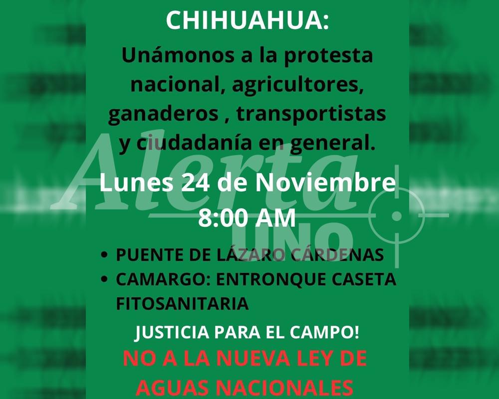 Las autoridades locales dieron a conocer que el lunes 24 de noviembre, desde las 8:00 de la mañana, se realizará una protesta nacional que ocasionará bloqueos en diversos puntos de Chihuahua y sus alrededores.