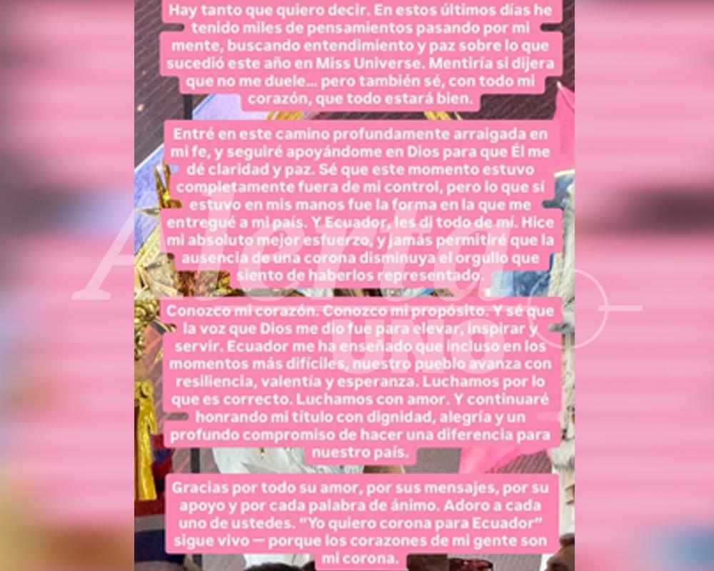 El certamen Miss Universo 2025 terminó convertido en un huracán de escándalos tras la coronación de Fátima Bosch, cuya victoria desató una ola de reclamos y acusaciones que no ha dejado de crecer. Apenas concluida la gala, Miss Ecuador y Miss Indonesia rompieron el silencio y estallaron en redes sociales, denunciando el dolor, la confusión y la “falta de transparencia” que, aseguran, marcó el concurso desde adentro. Sus mensajes, cargados de frustración, alimentaron la sospecha de que todo estuvo decidido antes de tiempo.