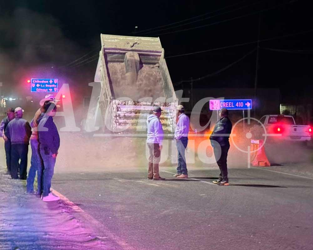 Camargo.– La noche de este miércoles se informó que un grupo de agricultores bloqueó el acceso sur de Camargo colocando grandes montículos de tierra, con el objetivo de impedir el paso de transportistas hacia la ciudad, luego de que en Jiménez se liberaran varios kilómetros de carretera.