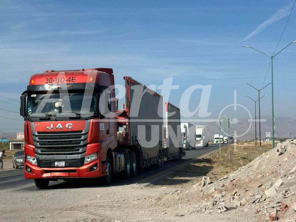 Autoridades mantienen presencia en el área para regular el flujo vehicular, ya que la acumulación de unidades pesadas provoca tránsito lento mientras se restablece la circulación normal.