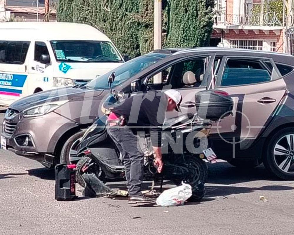 En el incidente participaron una motoneta y una camioneta gris Hyundai. A causa del impacto, el conductor de la motocicleta cayó al pavimento, por lo que personas que presenciaron el hecho solicitaron apoyo médico.