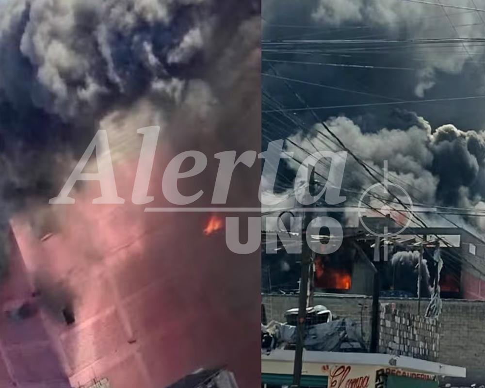 Una fuerte columna de humo negro sorprendió a vecinos de la colonia Hank González, en Ecatepec, tras un incendio reportado en una presunta fábrica de colchones.