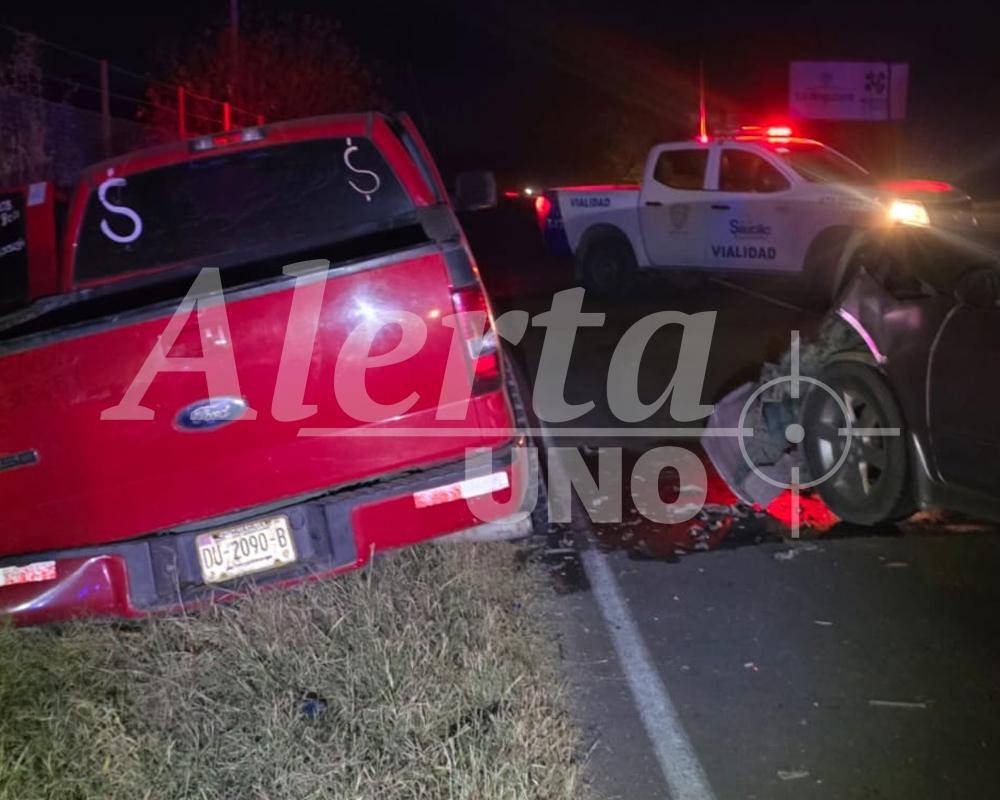 De acuerdo con los primeros datos, la pick-up circulaba de oriente a poniente cuando perdió el control y quedó atravesada en el camino, siendo impactada por el auto que venía en sentido contrario.
