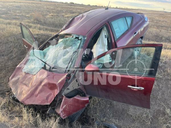 Un automovilista que se dirigía a su trabajo volcó de manera inesperada y terminó dentro de una acequia ubicada en un campo agrícola sobre la avenida De las Moras, a la altura del fraccionamiento Cumbres del Deporte. El vehículo quedó con daños totales.