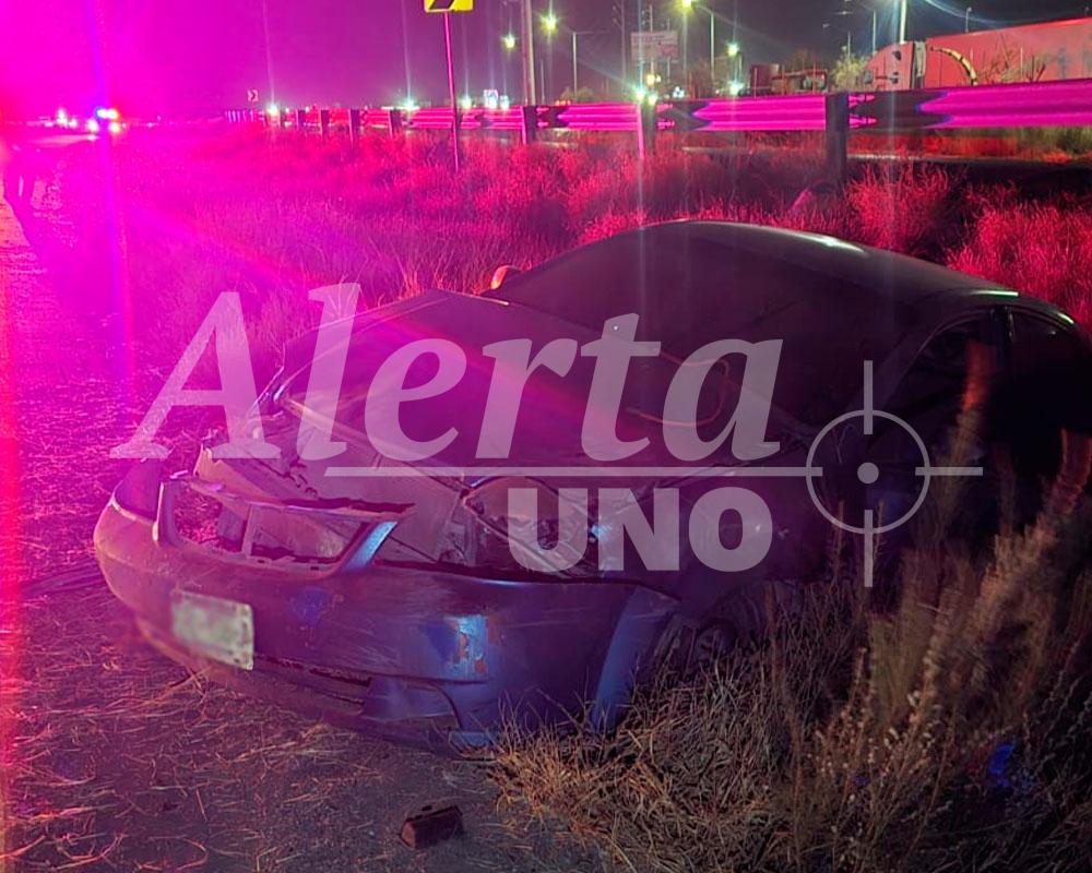 Se trata de un Chevrolet Optra azul, modelo antiguo, con placas de Chihuahua, que terminó fuera de la vía, entre la hierba, luego de que su conductor perdiera el control del automóvil.