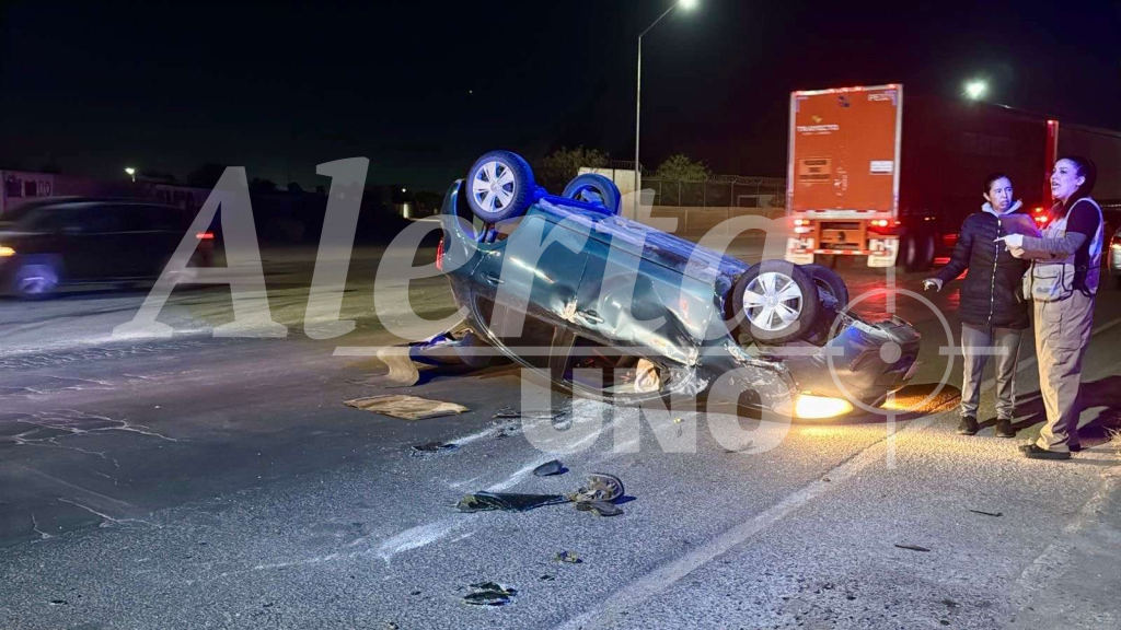 Al sur de la ciudad, un vehículo March volcó en la intersección del bulevar Lombardo Toledano y la calle Magisterial, luego de que su conductor perdiera el control.