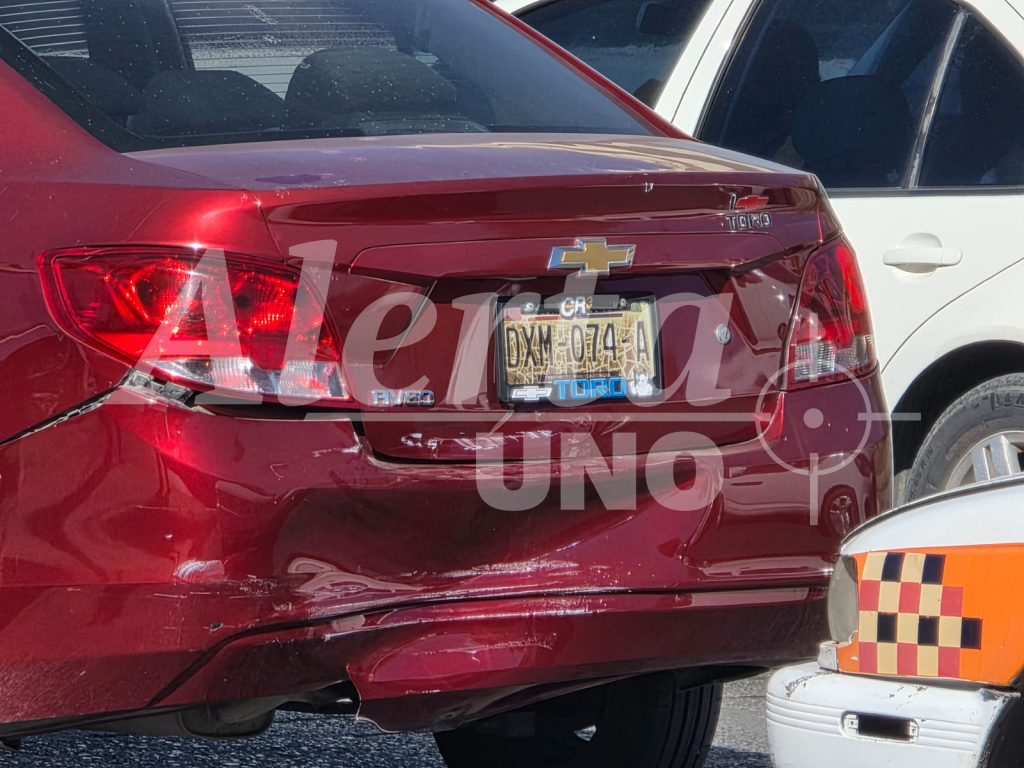 Los vehículos involucrados son un taxi del Sitio San Carlos y un Aveo color guinda, el cual presentó daños en la parte trasera. Hasta el momento no se reportan personas lesionadas.