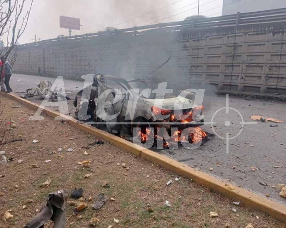 Un taxi que transportaba pirotecnia explotó y en consecuencia se incendió sobre los carriles laterales de la carretera México-Toluca, en el kilómetro 48.5 durante la mañana de este jueves, dejando un saldo preliminar de tres personas lesionadas, entre ellas un menor de edad.