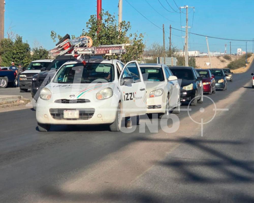 La Policía Vial acudió al lugar tras recibir el reporte del accidente, que involucró a dos vehículos particulares: un Chevrolet Malibu blanco, con placas del estado de Chihuahua, conducido por un hombre, y un Nissan March blanco, rotulado con los logotipos de la empresa IZZI, dedicada a servicios de internet y telecomunicaciones.