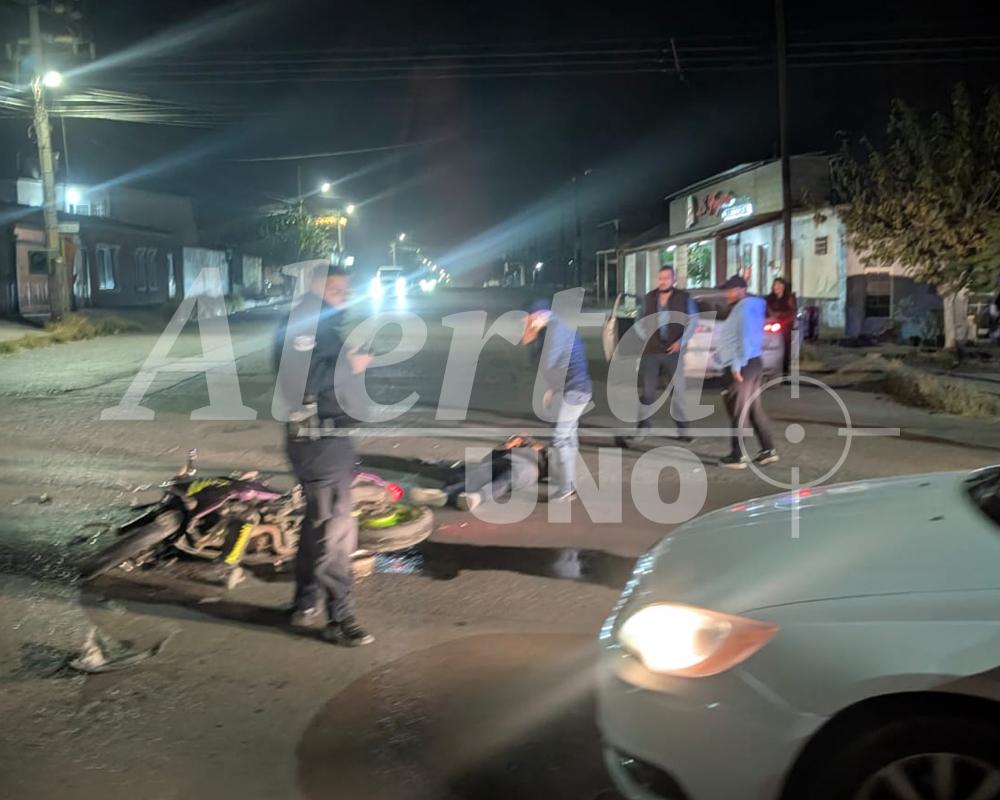 La noche de este sábado se registró un accidente vial con intento de fuga en el cruce de la avenida Fernando Baeza Meléndez y avenida Segunda, en el sector sur de la ciudad, donde un motociclista resultó lesionado.